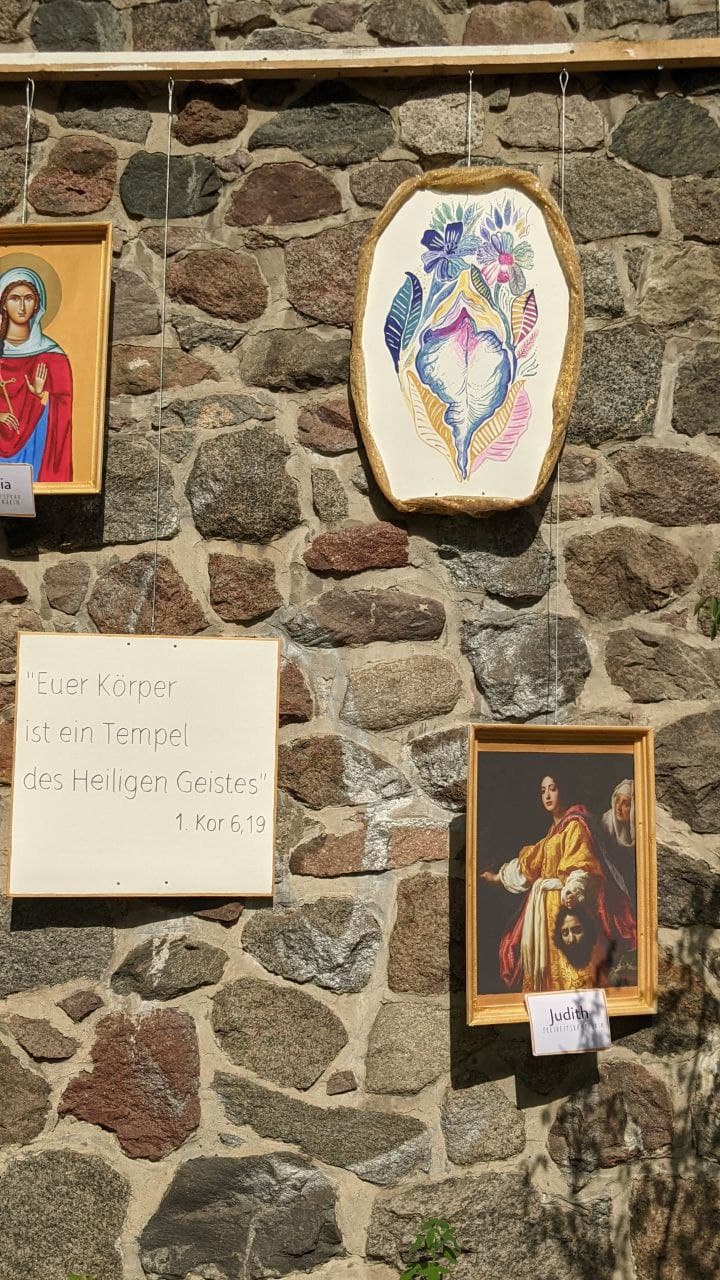 A Bibliából kiszedték azokat a testpozitív idézeteket, amiket az elmúlt kétezer év cenzúrája benn hagyott, elmagyarázták, hogy miért fontos az annyi szégyennel fedett, bűnösnek tekintett és olyan fontos testrészben meglátni Isten csodálatos művét, ajándékát, a Viva la Vulva falfirka köré gyártottak egy csinos rózsaszín képkeretet, és az Almaillatú szerzett stilizált puncikat is, amiket fel lehetett lógatni, úgy, ahogy azt egy rendes kiállításon szokás.
