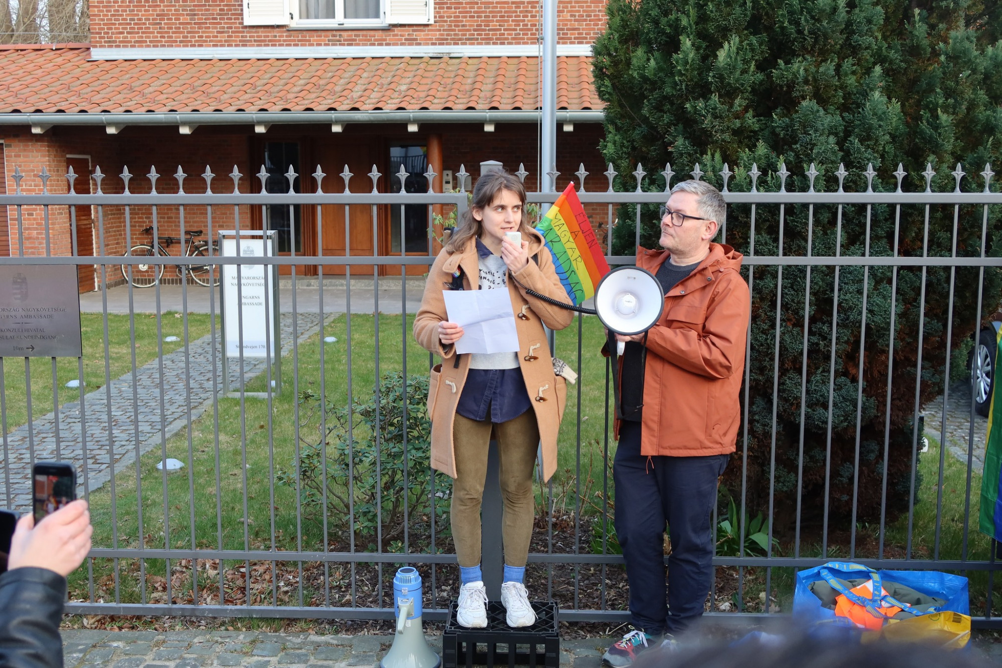 A felszólalók között volt Benjamin Hansen, a Koppenhága Pride vezetője, Gunvor Wibroe és Halime Oguz, a dán törvényhozás képviselői, illetve a Budapest Pride egyik képviselője is, aki online csatlakozott az eseményhez.