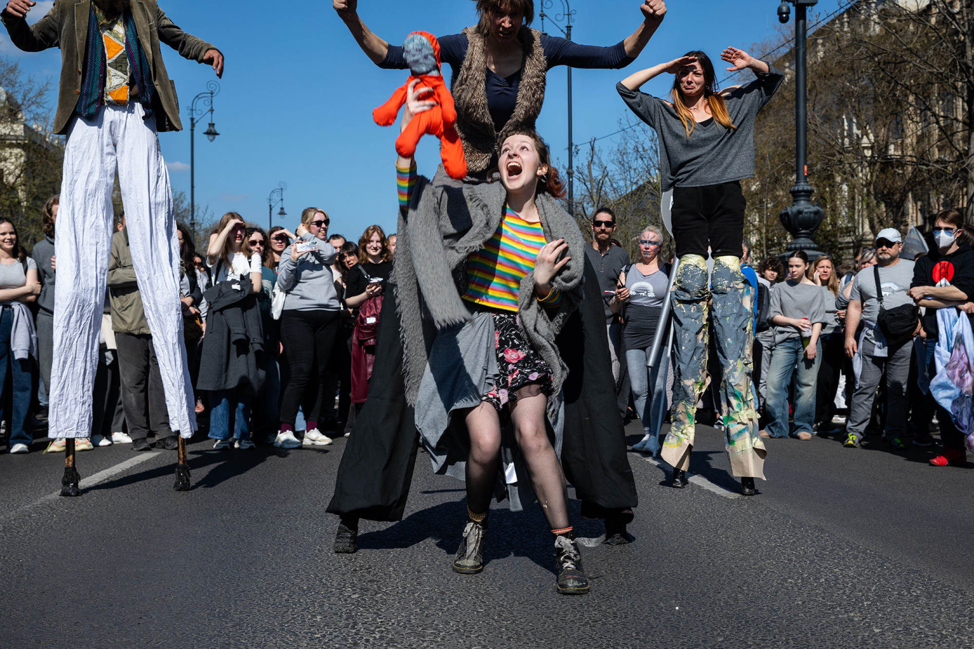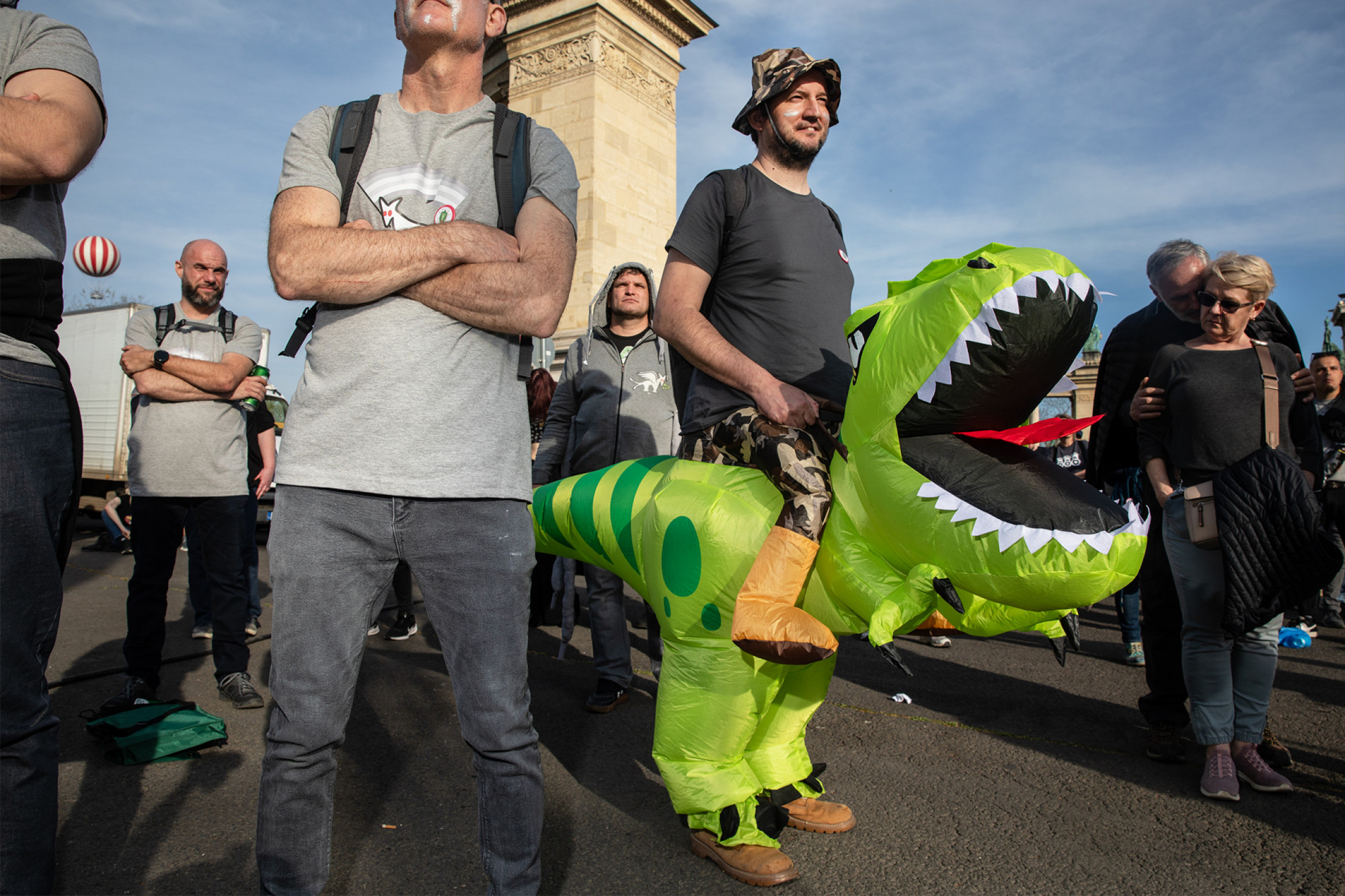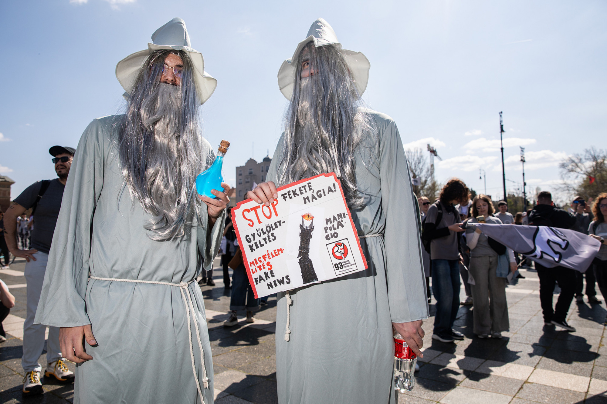 Nem tudom, hányan lehettek a résztvevők – tízezernél többen, húsznál kevesebben. Azt viszont tudom, hogy mindenki, aki a helyszínre ment, részesévé vált, nemcsak mint néző, hanem mint szereplő is. Például azáltal, hogy az eseményhez abszolút illő táblákat hoztak. Ezek önmagukban nem mindig számítottak komikusnak, de ott és akkor pontosan megtalálták a helyüket, és kivétel nélkül nevetést keltettek. Néhány példa: „Sose legyen SAJÁT véleményed!” „Grey Lives Matter.” „Make Hungary Grey Again!” „Tiltsák be a TRANSZparenseket!”