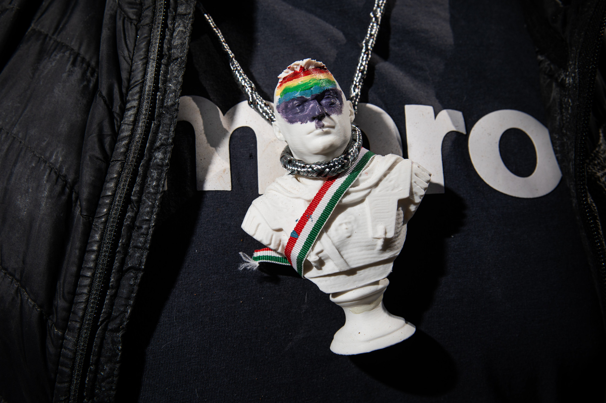 Így értem azt, hogy a rendezvény által alternatív világ jött létre. Mint a karnevál, egy átmeneti időszakra elfoglalta az utcát, megváltoztatta a szavak jelentését. Olyan nevetést alkalmazott, amely nem bánt, gúnyol vagy kisebbít, hanem megmutatja, hogy a világ másképpen is működhet, mint ahogyan megszoktuk, és ebben az alternatív világban könnyebb, kellemesebb lehetne élni. Felmutatott egy lehetőséget, ezáltal vált folytathatóvá. Olyan nyelvet hozott létre, amelyikben minden jelentés elcsúszik, minden komikussá válik, és mindennek ereje van. Annak is, ami ártatlan, például egy aranyos karácsonyi dekorációnak. (Ez tűnik egyébként a legtartósabbnak; azóta számos más helyen láttam már felbukkanni, például ezen a pólón:)