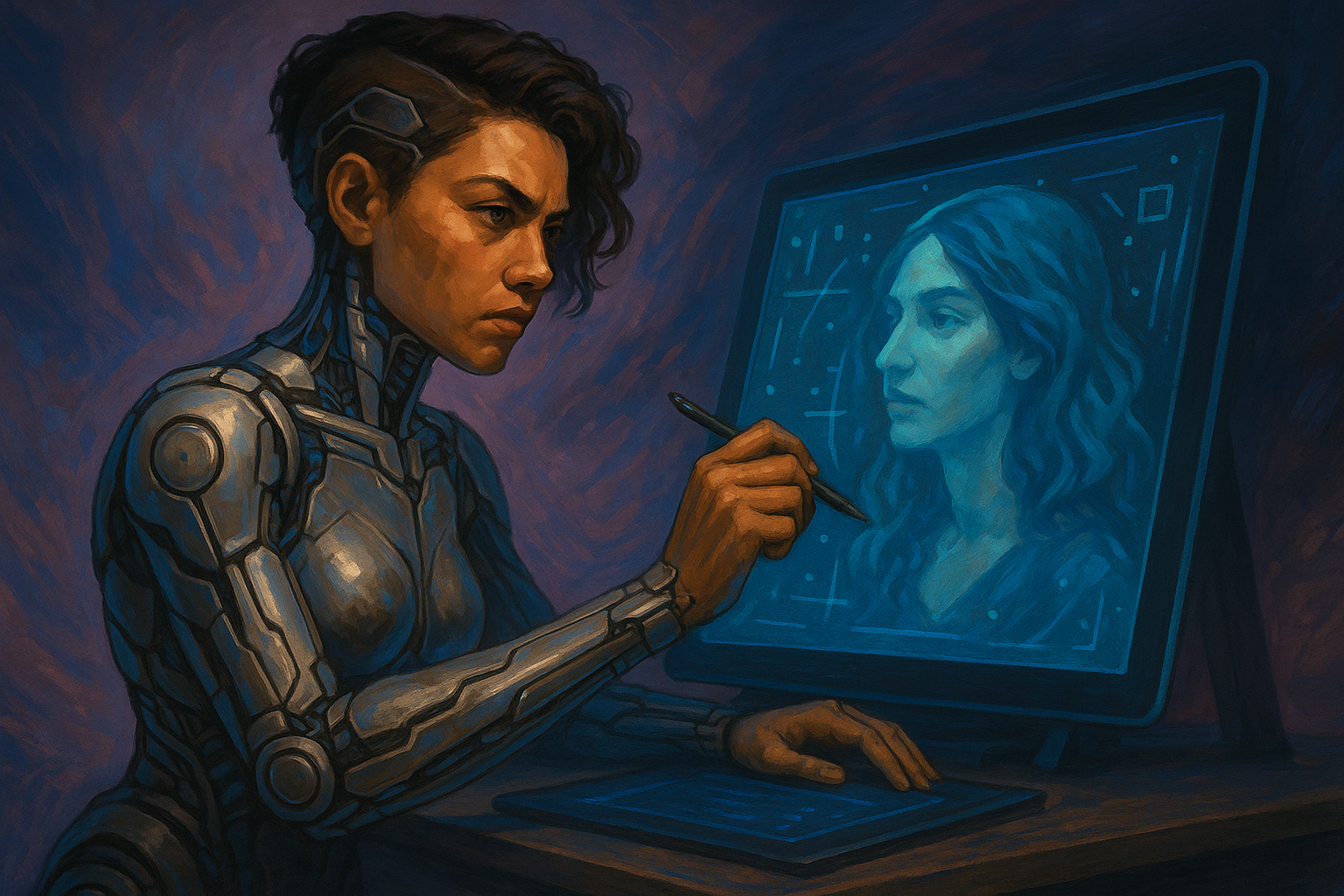 A mesterséges intelligencia lehetőség. Főként azoknak, akiket eddig a kulturális és anyagi tőke hiánya kizárt az alkotásból. Egy kisgyermekes szülő, aki naponta csak pár percet tud szánni a kreativitásra. Egy mozgáskorlátozott ember, akinek fizikai korlátai miatt nem volt hozzáférése vizuális alkotóeszközökhöz. Egy neurodiverz személy, akinek gondolkodása nem fér bele a konvencionális művészi keretekbe. Egy dolgozó nő, aki este 10 után, fáradtan képet akar alkotni a fejében élő világról. Számukra az MI nem luxus, hanem esély. Kapu egy olyan vizuális és kreatív térhez, ahová korábban nem volt kulcsuk.